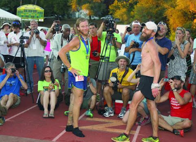 | Junto a timothy Olson a su llegada a meta en la WS |